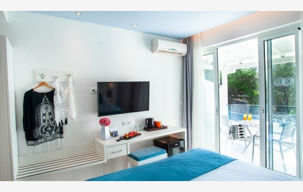 Superior Double RoomSea View – Sobe otvorenog tipa, površine 20-22 m2, s bračnim ili dva odvojena kreveta, pogodne za 2 osobe, nameštenim balkonima s pogledom na more i sopstvenim kupatilom s tušem.