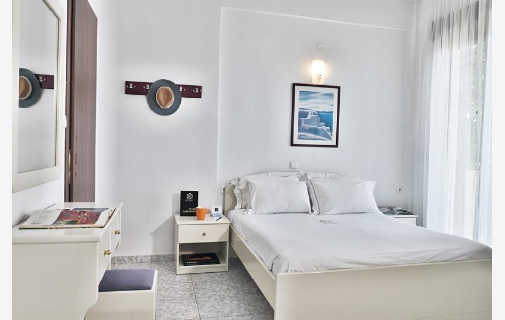 Double Room - Sobe otvorenog tipa, površine 19-22 m², s bračnim krevetom, nameštenim balkonom s pogledom na baštu i sopstvenim kupatilom s tušem.