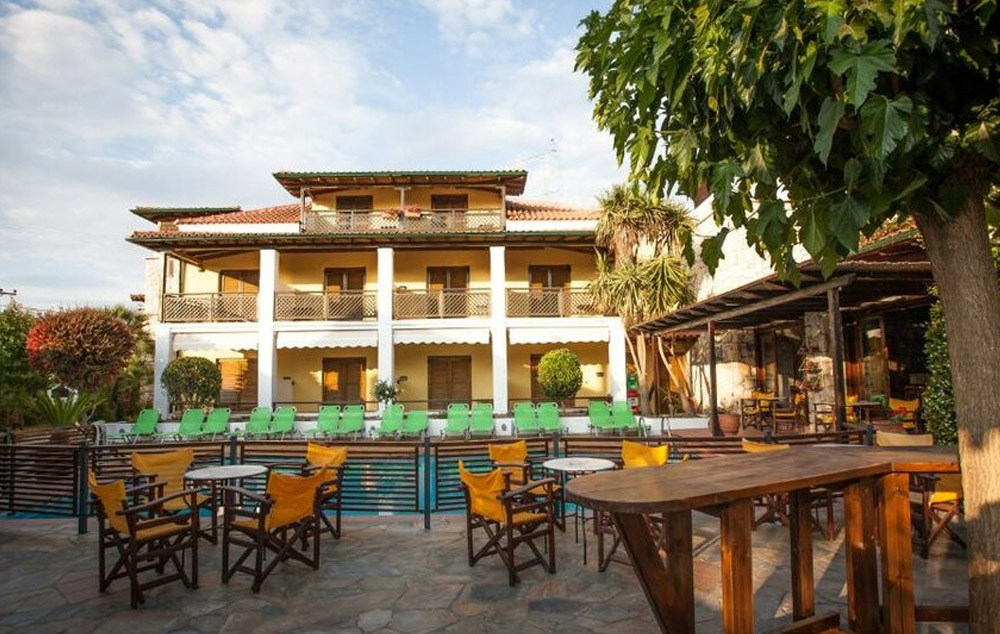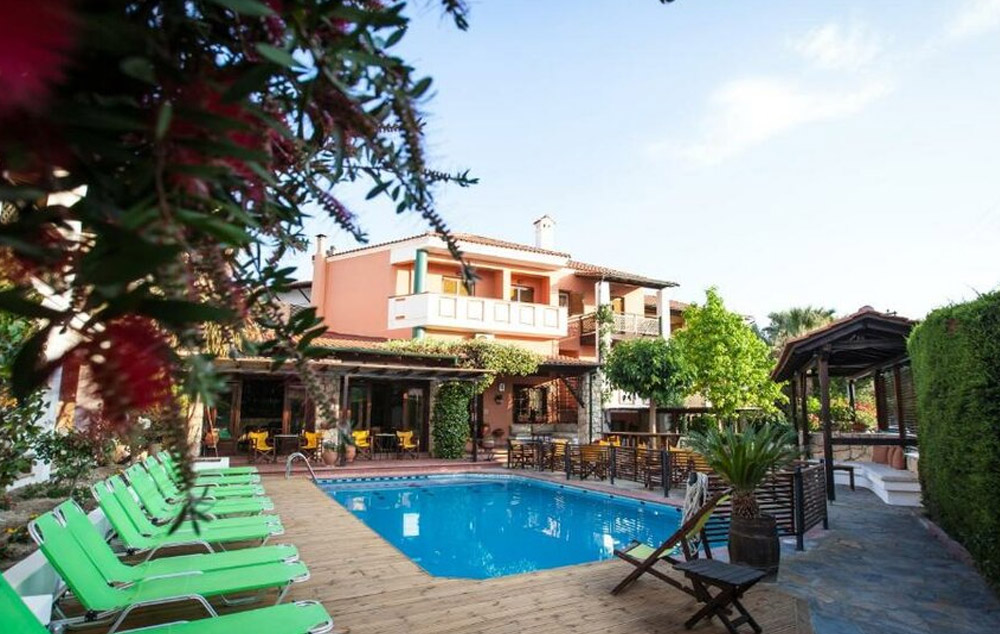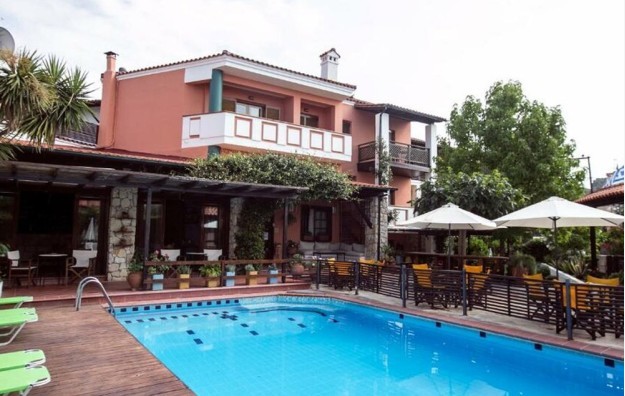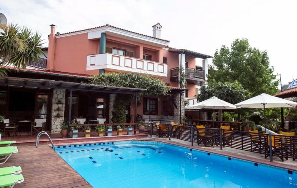 LOKACIJA :Hotel se nalazi u mirnom delu Pefkohorija. Intiman je, malog kapaciteta i ograničenim brojem slobodnih mesta. Okružen je vrtom punim cveća, mediteranskog rastinja u kojem se nalazi bazen.