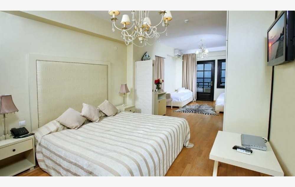 2 Bedroom Sea Collection – Porodične sobe od 35 m², renovirane, sastoje se od odvojene spavaće sobe s bračnim krevetom i dnevnog boravka s 2 odvojena kreveta, sopstvenog kupatila i nameštene terase s pogledom na more.