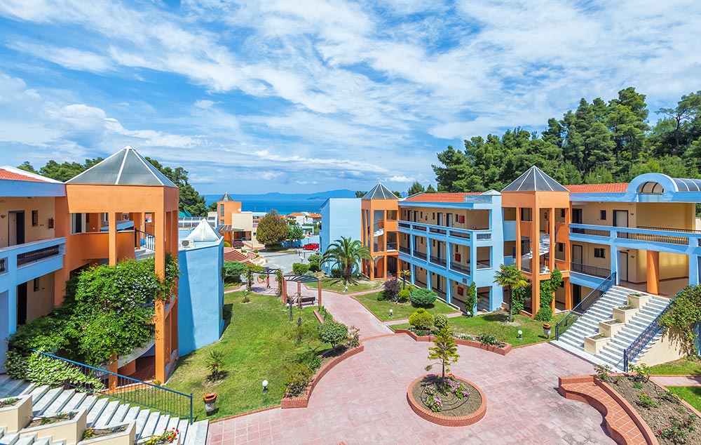 LOKACIJA: Na poluostrvu Halkidiki, Kasandra, 500 m od centra Pefkohorija, 800 m od plaže, 100 km od solunskog aerodroma.