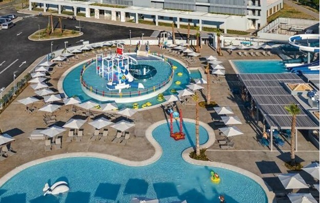 LOKACIJA: Potpuno novi porodični hotel koji svojim jedinstvenim i modernim izgledom upotpunjuje porodicu hotela Blue Lagoon Group u Halikidikiju.Izgradjen 2023/24. Lokacija uz peščanu plažu Kalives čini ga idealnim odredištem za opuštanje. Blue Lagoon Queen, sa svojim potpuno novim vodenim parkom, tu je da pruži radosne i nezaboravne porodične trenutke s vodenim igrama i toboganima.