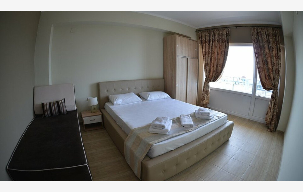 Apartment sea view-35 m2, sa bračnim ili dva odvojena kreveta u glavnoj spavaćoj sobi i ugaonom sofom u dnevnoj sobi, sopstvenim kupatilom i nameštenim balkonom sa pogledom na more.