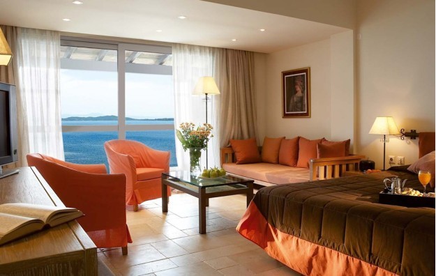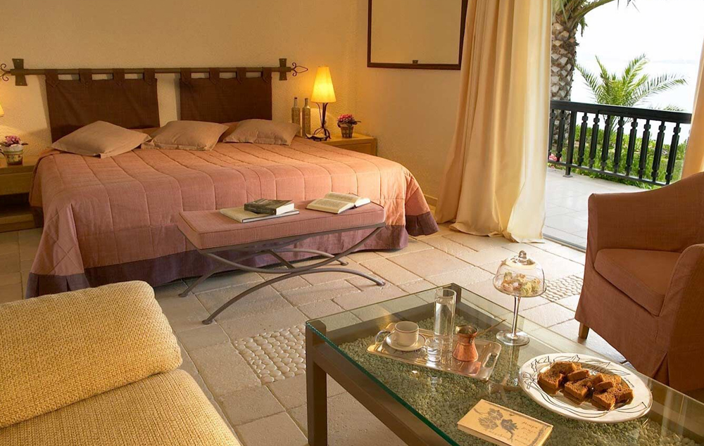 Junior suite sa pogledom na more sa dzakuzijem: oko 45m2, sa pogledom na more, opremenjena safrancuskim ili dva singl lezaja. Namenjena za 2 osobe