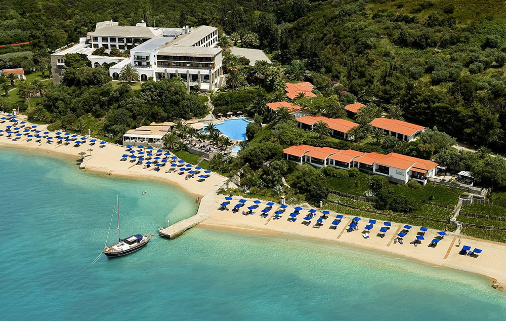 LOKACIJA: Još jedan u nizu malih luksuznih hotela, udaljen oko 4 km od mirnog mesta i luke Uranopolis, i nadomak granice sa Svetom zemljom - Atosom. Izgrađen u jedinstvenom vizantijskom stilu, Eagles Palace zaista pruža priliku kako za porodični odmor, tako i za profesinalna okupljanja u vidu kongresa, seminara i sl. Ima sopstvenu plažu.