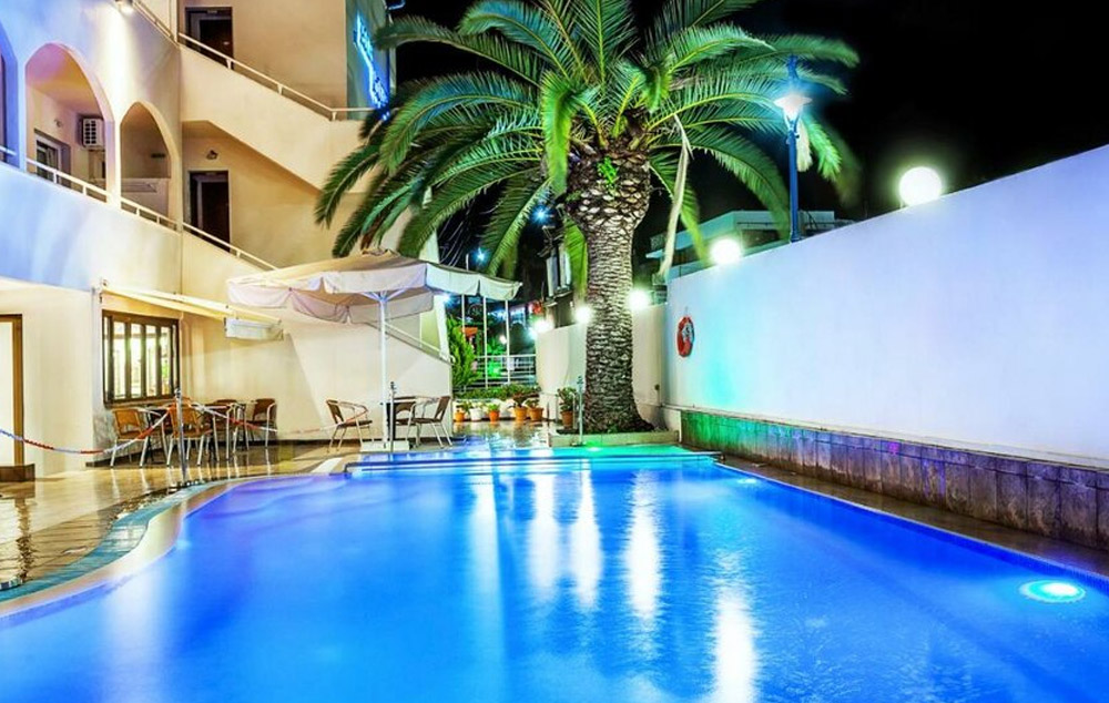 LOKACIJA: Udoban i savremen mali hotel, odličnog položaja – u novijem delu Haniotija, tačnije 350 m od centra, 300 m od plaže. Nudi svojim gostima sve pogodnosti mirnog odmora. Bar kraj malog bazena prijatno je mesto za odmor kako tokom dana tako i tokom večeri. Hotel je renoviran 2010. godine kada je dobio dodatnu zvezdicu pod okriljem lanca hotela "Elinotels”.