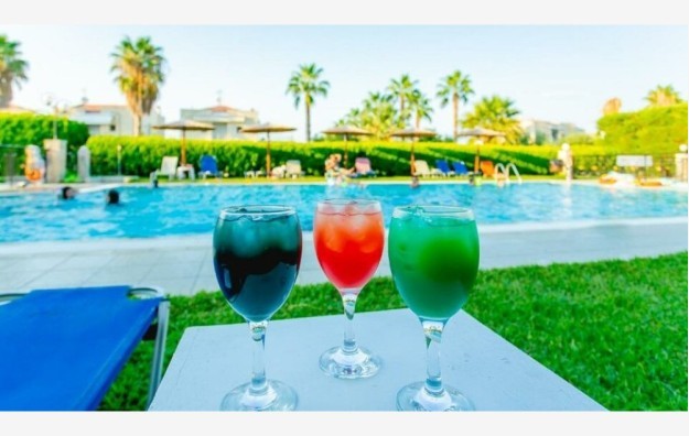 SADRŽAJ:Recepcija, wifi internet (slab), sala za doručak, restoran, otvoreni bazen sa ležaljkama i suncobranima oko bazena, bar pored bazena, dečiji bazen, uredjeno dvorište.