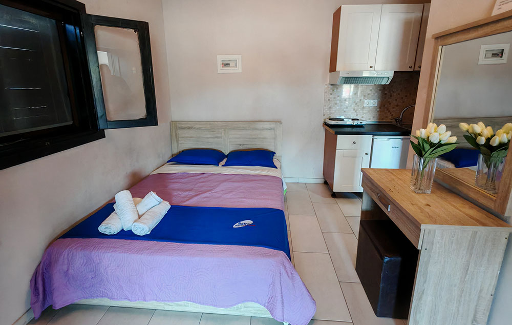 Kuća Alfa Alfa nalazi se na najboljoj lokaciji na oko 30m od gradske plaže u najlepšem delu Neos Marmarasa u neposrednoj blizini igrališta. Kuća je u rustičnom stilu. Većina studija i apartmana imaju prelep bočni pogled na more. Kuća ima SAT TV, WIFI kao i klima uređaje čije je korišćenje uključeno u cenu. Studiji na drugom spratu su manje kvadrature i imaju prolaznu terasu zbog čega imaju i nižu cenu.