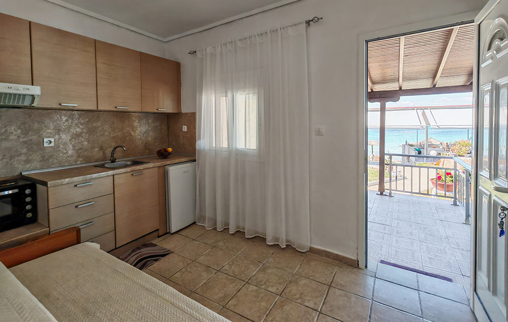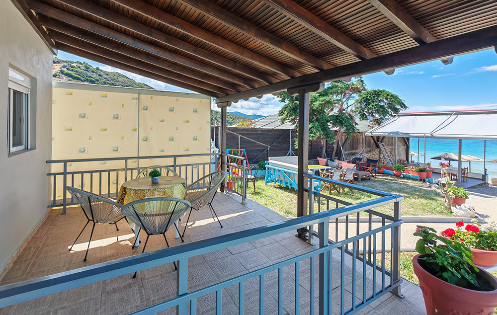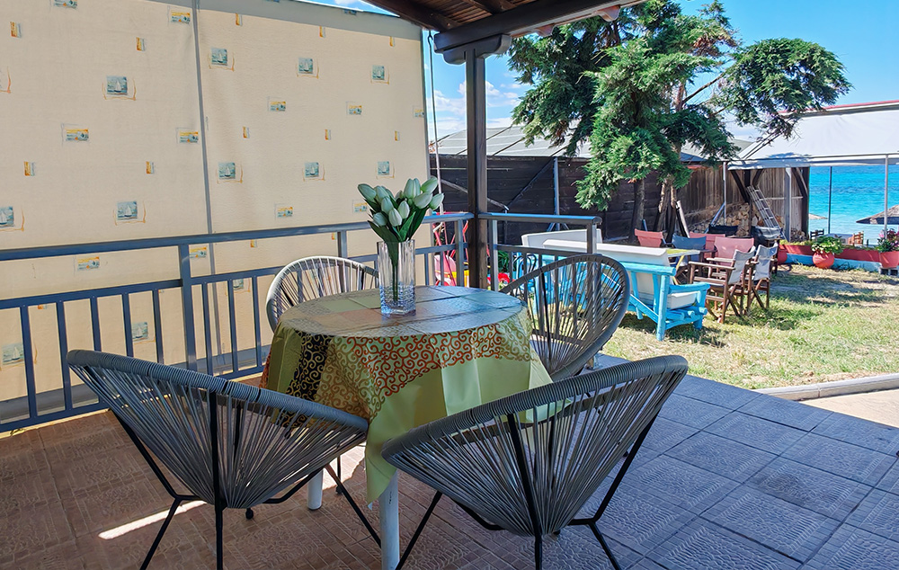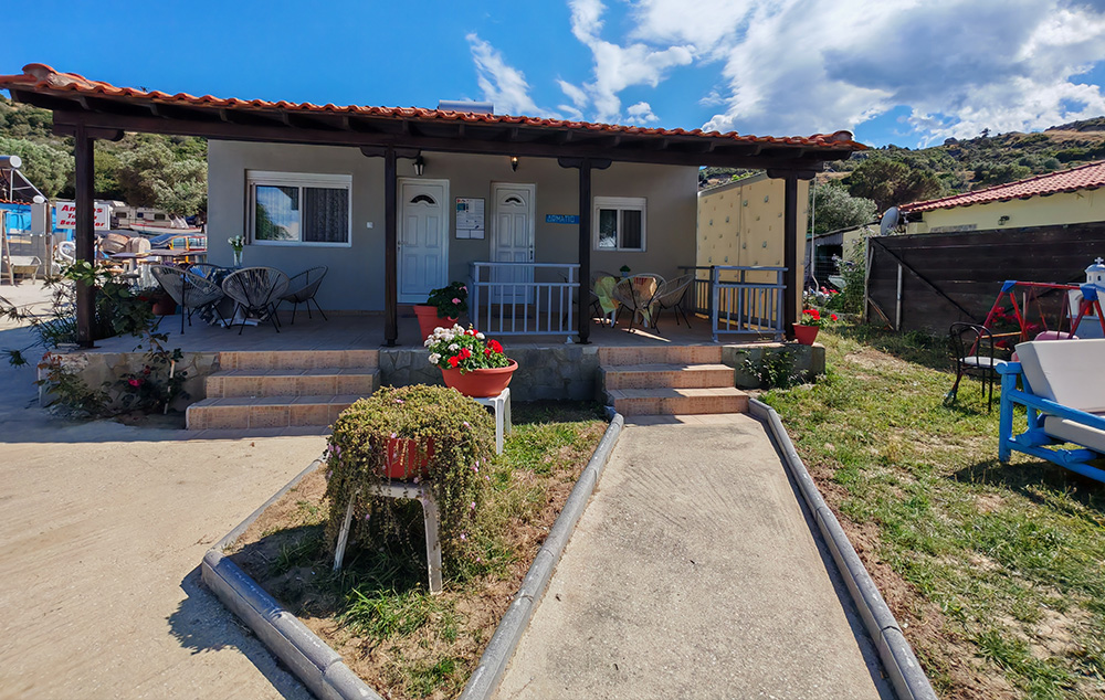 Kuća Ammos nalazi se na dobro poznatoj plaži Klimataria koja spada u red najlepših i najpopularnijih na celoj Sitoniji. Studio i apartman se nalaze u visokom prizemlju i imaju direktan pogled na more. Kuća ima signal za korišćenje bežičnog interneta kao i klima uređaj čije je korišćenje uključeno u cenu. Iza kuće postoji prostor za parkiranje vozila.