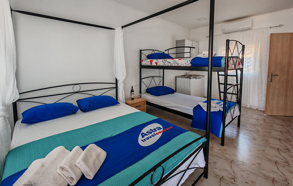 U kojim kućama dete uzrasta do 5.99 godina može boraviti bez doplate i bez sopstvenog ležaja, molimo Vas da se detaljnije informišete u Vašoj turističkoj agenciji. Na upit, dete starije od 6 godina, a mlađe od 11.99 godina, može boraviti pored maksimalnog broja osoba u apartmanu bez sopstvenog kreveta uz doplatu od 5 do 10 evra po danu.