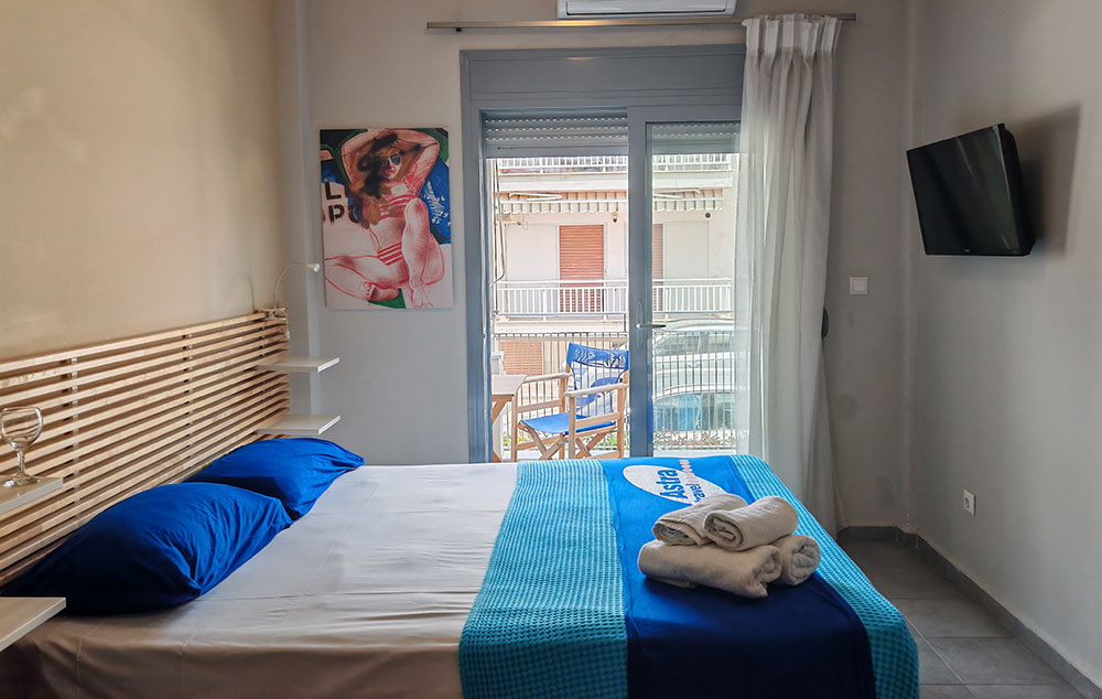 Kuća Amos se nalazi na oko 20m od mora odmah pored poznatog restorana Talasinos. Kuća se odlikuje izuzetno prostranim studijima, apartmanima i duplexima. Nalaze se u niskom prizemlju, prvom i drugom spratu. Kuća ima SAT TV, WIFI i klima uređaj čije je korišćenje uključeno u cenu. Svi imaju prostrane terase.