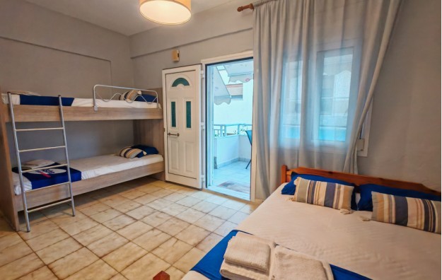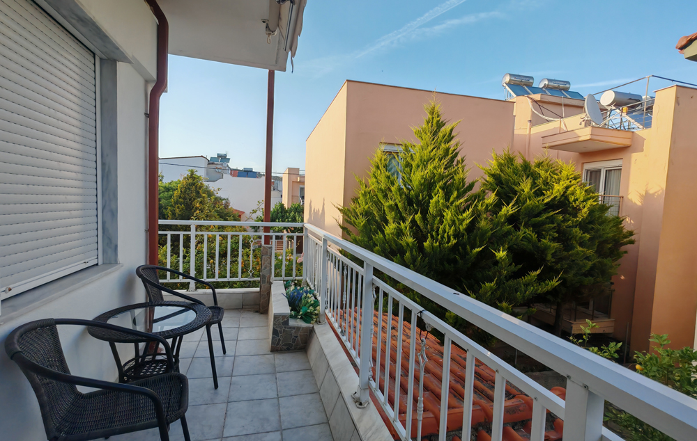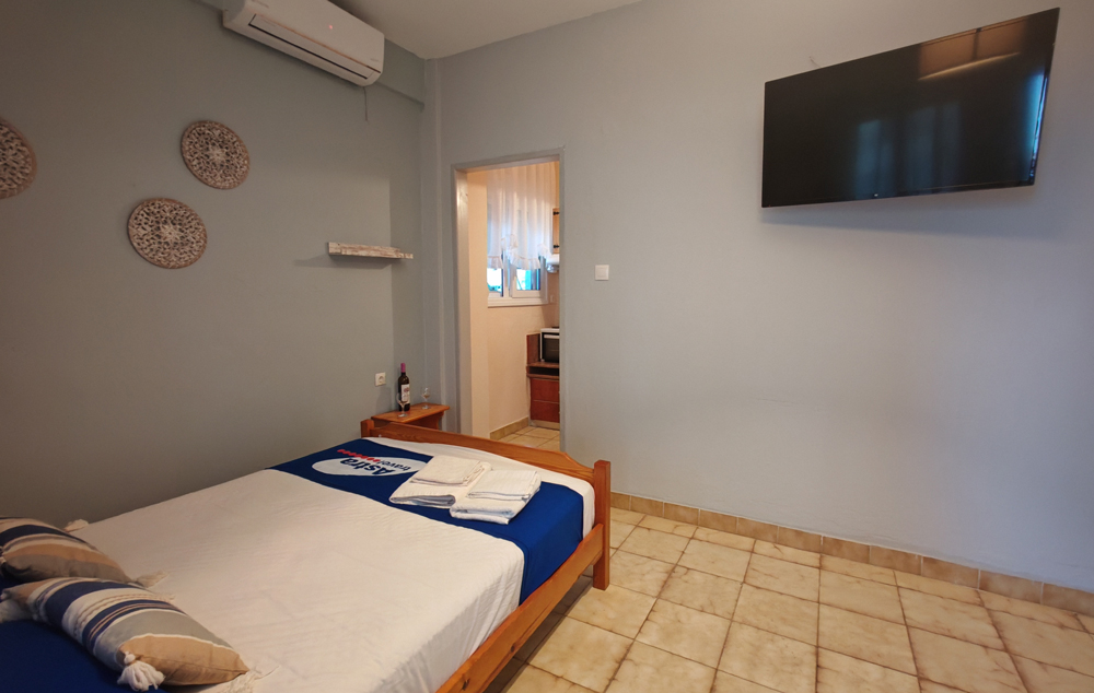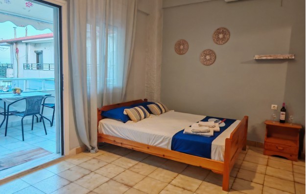 Kuća Anna by the sea se nalazi na odličnoj lokaciji u novom delu Sartija na samo 60m od plaže u neposrednoj blizini popularne kuće Aristotelis. U ponudi su studiji koji se nalaze na prvom spratu. Četvorokrevetni studio ima prolaznu terasu i pogled na more između zgrada. Kuća ima signal za bežični internet, TV kao i klima uređaj čije je korišćenje uključeno u cenu.
