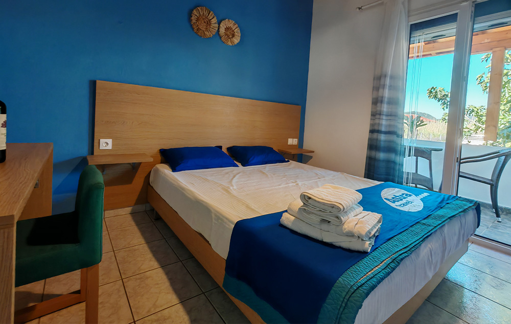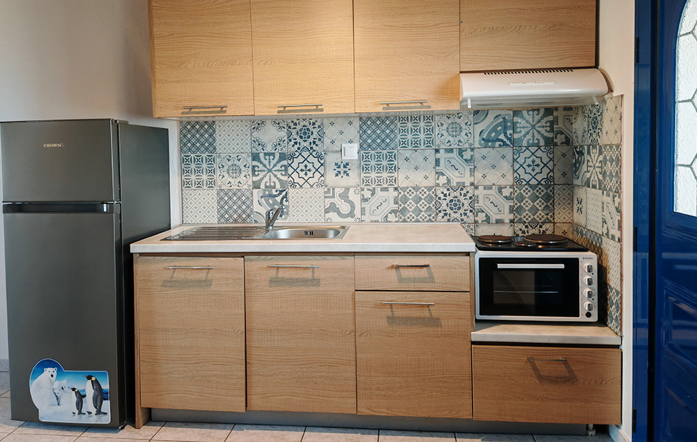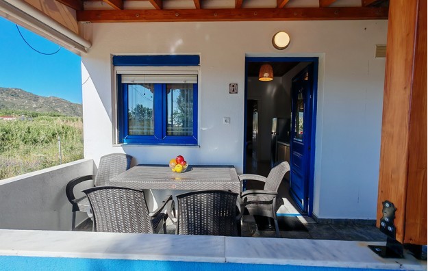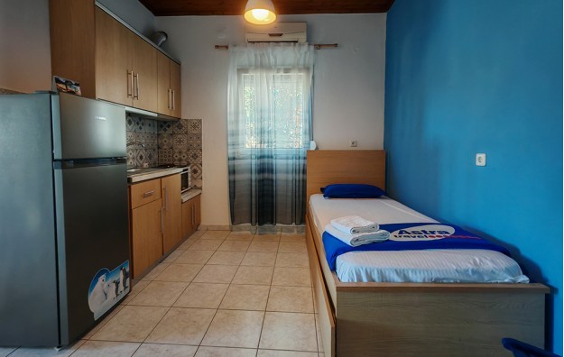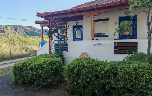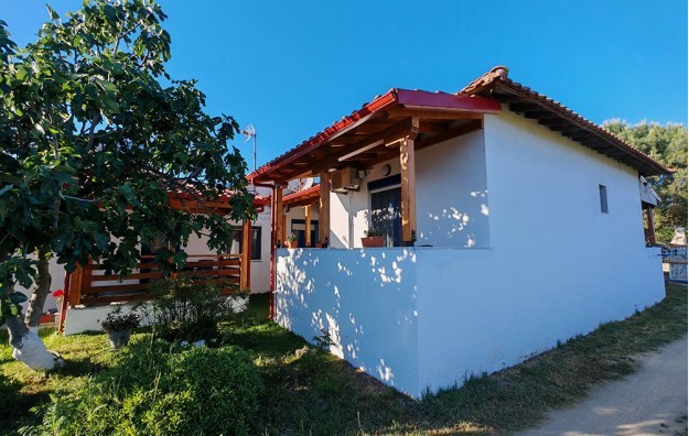 Nalazi se na 50m od prostrane Sykia plaže. U ponudi su studiji za do 4 osobe i apartmani za do 5 osoba koji se nalaze u visokom prizemlju. Kuća ima SAT TV, WIFI i klima uređaje čije je korišćenje uključeno u cenu. Gostima je na raspolaganju parking. Najbliži market za nabavku osnovnih potrepština se nalazi na nekih 400m od kuće. Za veće snabdevanje najbliža je Sykia na 4km ili Sarti na 11km od kuće.