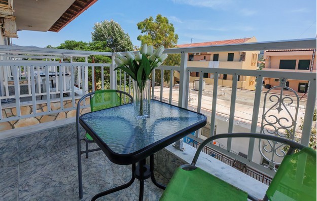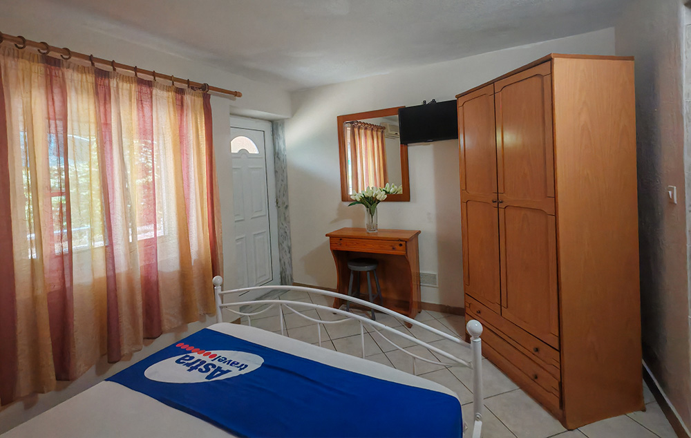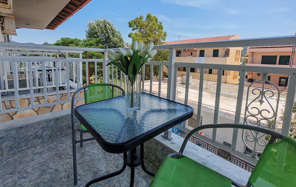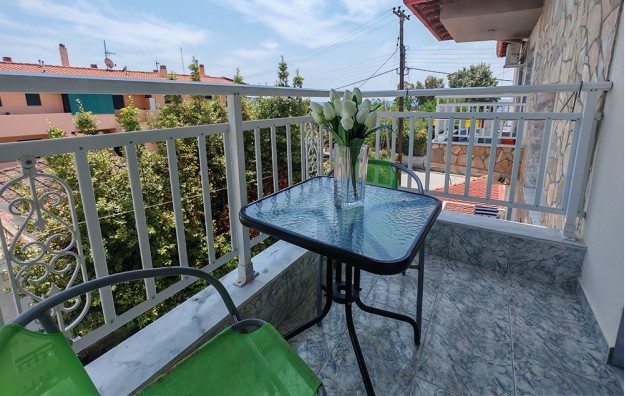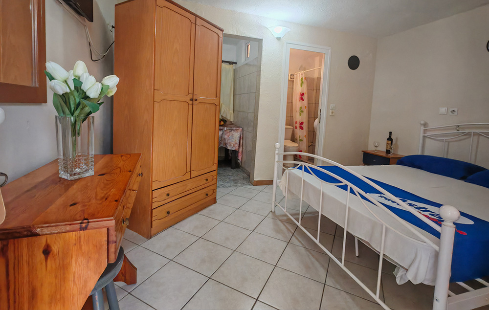 Nalazi se na oko 40m od mora. U ponudi su studiji koji se nalaze u prizemlju, na prvom i drugom spratu za dve do tri osobe. Studiji u prizemlju su cenovno izdvojeni i povoljniji su. Kuća ima SAT TV, signal za besplatno korišćenje bežičnog interneta kao i klima uređaje čije je korišćenje uključeno u cenu u julu i avgustu. U dvorištu kuće postoji parking sa ograničenim brojem parking mesta koji se doplaćuje 5 eur po danu vlasnicima kuće. Ne postoji mogućnost rezervacije parkinga već se prilikom dolaska na upit proverava raspoloživost.