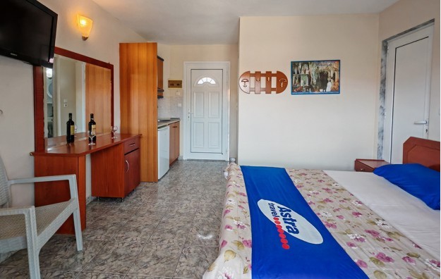 Svi studiji i apartmani imaju terasu, wc i tuš sa toplom i hladnom vodom, sto i stolice, orman, čajnu kuhinju sa frižiderom koja je opremljena prema broju osoba (tanjiri, čaše, šolje, escajg, šerpa, tiganj, džezva za kafu ). Promena posteljine je na pola smene, za smene duže od 8 noći. U većini objekata domaćini kuća na dan zamene posteljine dostavljaju čistu posteljinu koju gosti sami menjaju kao što i sami održavaju higijenu smeštajne jedinice tokom svog boravka. U pojedinim objektima, osoblje kuće ulazi u smeštajne jedinice i samostalno vrši zamenu posteljine. Pored standardne opreme, smeštajne jedinice mogu imati i određenu opremu koja ih izdvaja u odnosu na ostale smeštajne jedinice iz ponude. U cenovnicima se pored naziva određenih kuća nalaze brojevi.