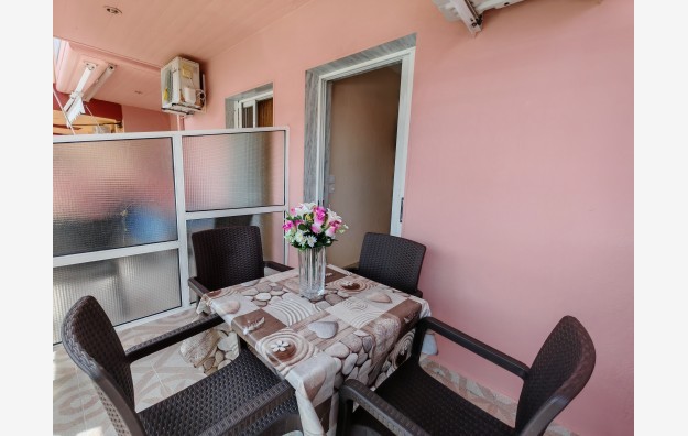 Nalazi se u starom delu Sartija na oko 180m od plaže. U ponudi su apartmani za 3-4 osobe, koji se nalaze na drugom spratu. Ovi apartmani su pogodni za porodice sa malom decom (zid nije pune visine, pa se mogu čuti deca u susednoj sobi). Kuća ima SAT TV, besplatan signal za WIFI i klima uređaje uz doplatu, kao i čišćenje na pola smene prilikom zamene posteljine.