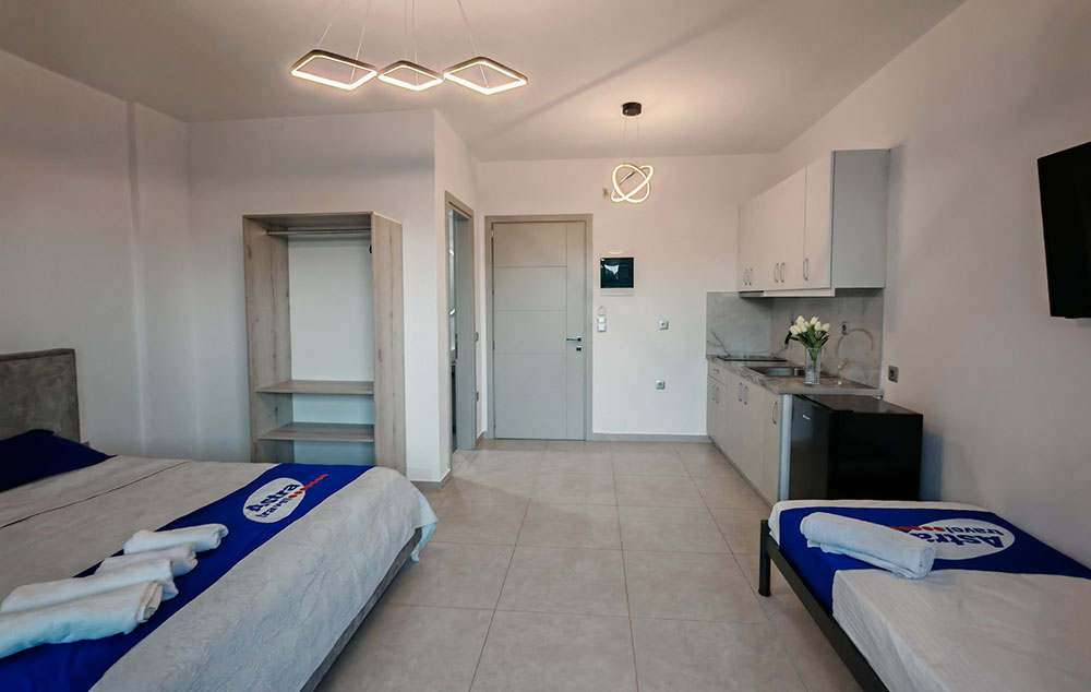 Potpuno nova kuća Astra View primila je svoje prve goste u julu 2024. godine. U ponudi su apartmani i duplexi na prvom, drugom i trećem spratu kao i superior studio na četvrtom spratu. Sa izuzetkom apartmana i duplexa na prvom spratu svi ostali imaju prostrane terase sa direktnim pogledom na mesto, more i najlepši zalazak sunca u Neos Marmarasu. Kuća poseduje lift koji je gostima na raspolaganju. Nalazi se u centru Neos Marmarasa na samo 180m od glavnog trga i čuvene Roma Pizze gde se nalazi i luka za turističke brodiće. Kuća ima signal za besplatno korišćenje bežičnog interneta, a smeštajne jedinice imaju SAT TV i klima uređaje čije je korišćenje uključeno u cenu od 19.06 do 15.09. Na pola smene je organizovano čišćenje i zamena peškira i posteljine. Kuća ima ograničen broj parking mesta.