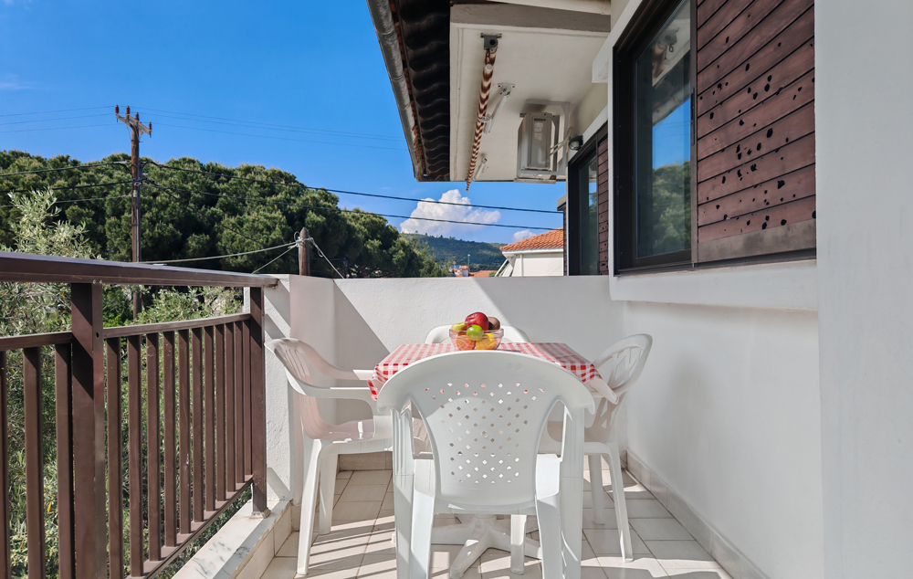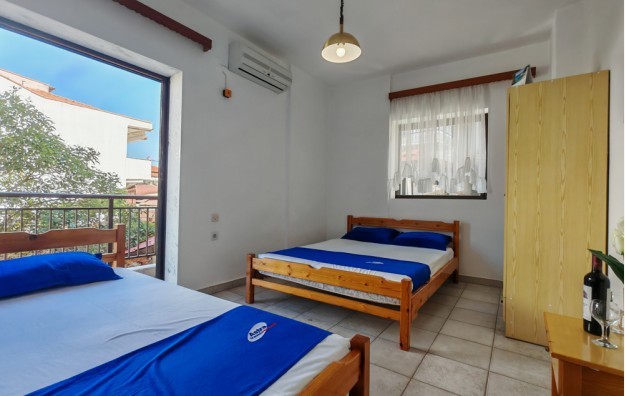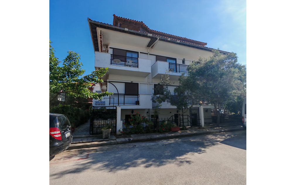 Nalazi se u novom delu Sartija na oko 110m od najlepšeg dela peščane plaže u Sartiju. Apartmani su za 2 do 5 osoba, a glavni kvalitet ove kuće jeste što je i smeštaj za dve osobe u strukturi apartmana sa odvojenom spavaćom sobom. Izuzetak je studio br. 4 koji je i cenovno odvojen. Kuća ima SAT TV, besplatan WiFi, klima uređaje čije se korišćenje doplaćuje.