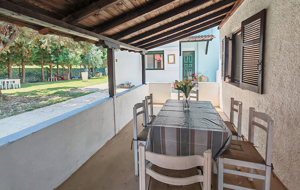Nalazi se na oko 390m od plaže. U ponudi su studiji i apartmani u prizemlju i na prvom spratu. Kuća ima SAT TV, WIFI i klima uređaje čije je korišćenje uključeno u cenu. Gostima je na raspolaganju dvorište kao i parking.