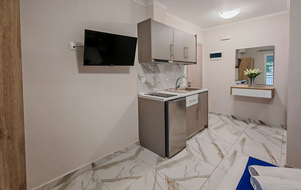 Kuća Eka (ex. Paralikas) je potpuno renovirana za sezonu 2023. Nalazi se u starom delu Sartija, na glavnom šetalištu preko puta poznatog girosa “Ovelix”. U ponudi su studiji za 2 do 3 osobe koji se nalaze na prvom i drugom spratu. Kuća ima SAT TV, WIFI kao i klima uređaje čije je korišćenje uključeno u cenu.