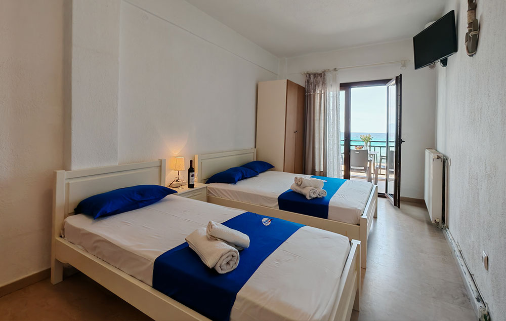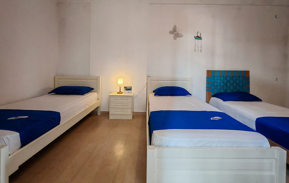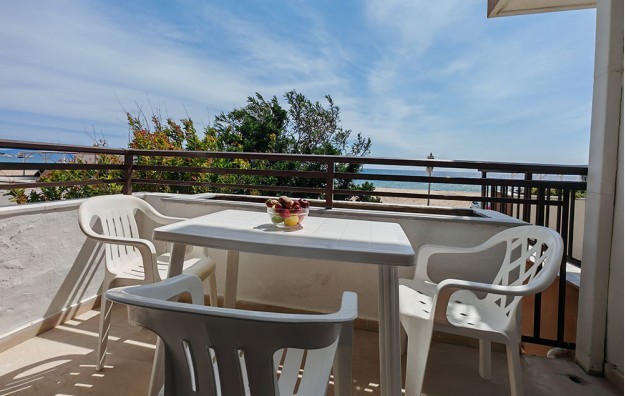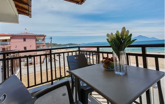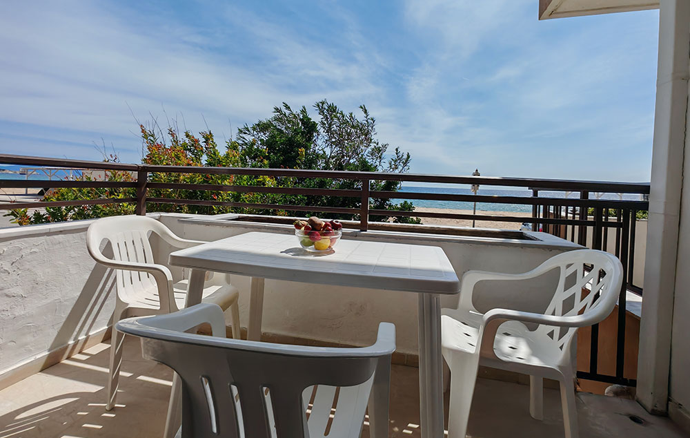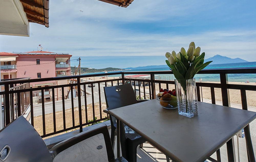 Nalazi se na samoj plaži u novom delu Sartija. U ponudi su studiji sa i bez pogleda na more koji su cenovno izdvojeni i dupleks za 6 osoba koji se nalazi na prvom spratu i ima direktan pogled na more. Kuća ima SAT TV, WIFI i klima uređaje čije se korišćenje posebno doplaćuje. Na pola smene je organizovano čišćenje studija. Ovo je jedna od retkih kuća koje se nalaze na samoj obali i imaju direktan pogled na more.