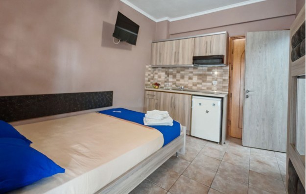 Nedavno renovirana kuća F&M nalazi se u Sarti Beach-u, na samo 150m od plaže, u delu gde je ubedljivo najlepša. U ponudi su studiji za 2-4 osobe i dupleksi za do 4 osobe koji se nalaze u visokom prizemlju i prvom spratu. Jedan od dupleksa ima direktan pogled na more. Kuća ima SAT TV, WIFI i klima uređaje čije je korišćenje uključeno u cenu. Pored standardne kuhinjske opreme gostima je na raspolaganju i mikrotalasna rerna.