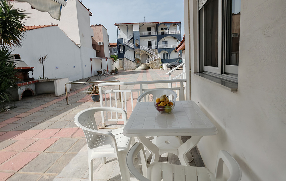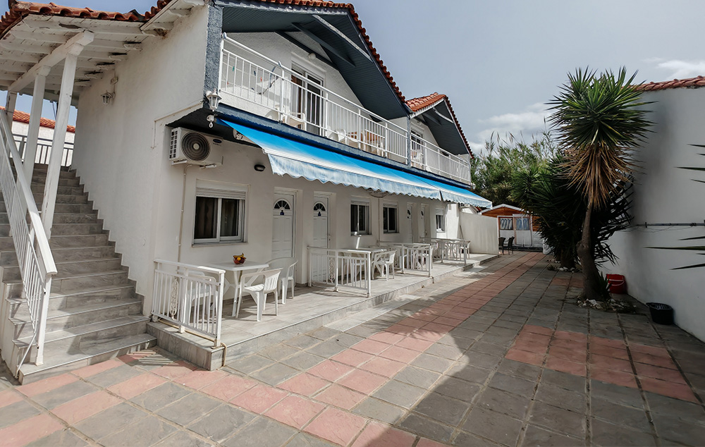 Kuća se nalazi u središnjem delu mesta Toroni u blizini kuća Alexandros i Anna. Studiji se nalaze sa zadnje strane kuće daleko od ulice i buke i okrenuti su ka dvorištu. Studiji su za 2 do 3 osobe. Kuća ima SAT TV, signal za besplatno korišćenje bežičnog interneta i klima uređaje čije se korišćenje posebno doplaćuje. Studiji A1, A2, A3 i A4 se nalaze u dvorišnoj zgradi kuće. U dvorištu kuće postoji parking sa ograničenim brojem parking mesta koji se doplaćuje 8 eur po danu vlasnicima kuće. Ne postoji mogućnost rezervacije parkinga već se prilikom dolaska na upit proverava raspoloživost.