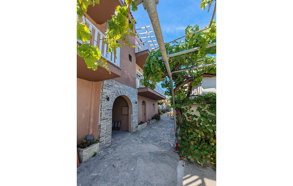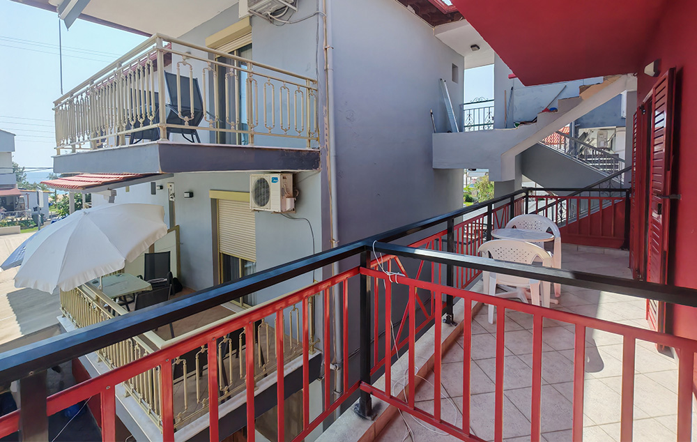 Nalazi se na 40m od mora, između kuće Ana (Sakis III) i kuće Fay (Sakis I). Studiji i apartmani se nalaze na prvom i drugom spratu. Kuća ima signal za besplatno korišćenje bežičnog interneta, a sve smeštajne jedinice imaju TV i klima uređaj čije je korišćenje uključeno u cenu. Kuća je renovirana 2025. godine. Domaćini kuće obezbeđuju korišćenje peškira uz depozit u iznosu od 10 evra.