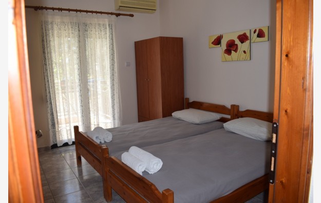 Kuća Georgiadis se nalazi u mirnom delu Metamorfozisa u relativnoj blizini centra i na oko 450m od plaže. Okružena je zelenilom i ima dvorište koje je na raspolaganju gostima. U ponudi su apartmani u visokom prizemlju i na prvom spratu. Kuća ima TV, signal za besplatno korišćenje kao i klima uređaj čije je korišćenje uključeno u cenu.