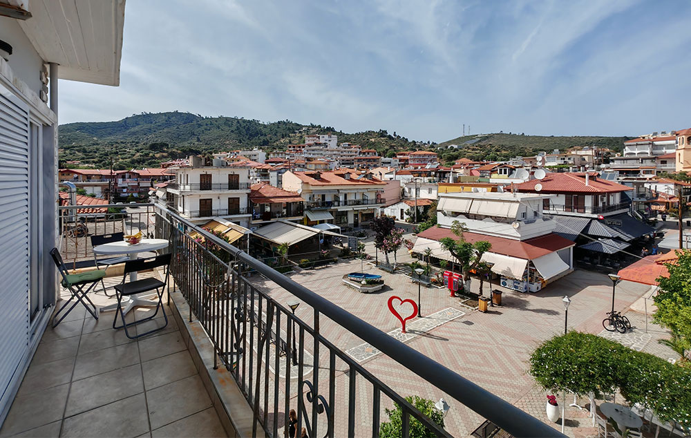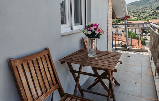 Smeštena je na glavnom trgu, na oko 70 m od plaže. Studiji i apartmani se nalaze na drugom i trećem spratu i imaju bočni pogled na more, osim studija br. 1 koji ima manju terasu sa pogledom na trg. Kuća ima TV kao i klima uređaje čije je korišćenje uključeno u cenu.