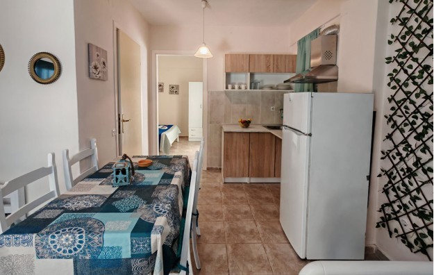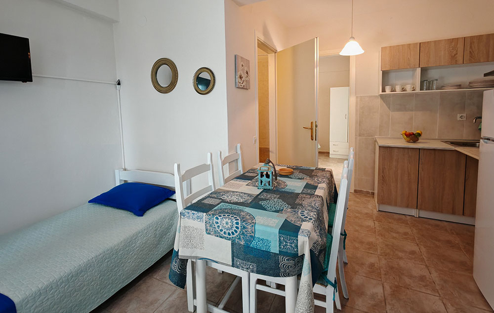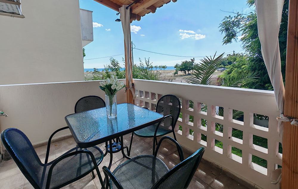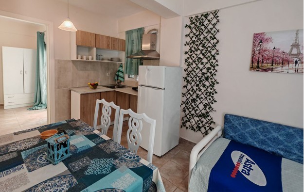 Kuća Kortesa nalazi se u neposrednoj blizini šetališta i plaže u mestu Psakudija. Na udaljenosti od oko 200m od mora, kuća je okružena zelenilom. U ponudi su apartmani, od kojih se dva nalaze u niskom prizemlju, a preostala dva u visokom prizemlju. Sobe imaju pogled na dvorište. Kuća ima TV, WiFi i klima uređajima čije je korišćenje uključeno u cenu.