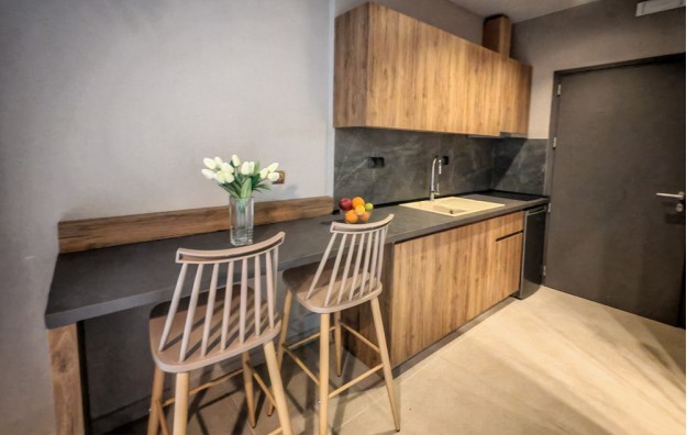 Potpuno nov objekat Lithos village dočekuje svoje goste od 30.maja 2025 godine. Trokrevetni studiji i četvorokrevetni apartmani se nalaze u prizemlju i niskom prizemlju. Lithos village je sastavno deo lithos villas Nikiti i nalazi se na samo 2km od centra Nikitija, na 1.5km od Lidla i Masoutisa i na manje od kilometar od plaže u nastavku mesta Nikiti i 3km od jedne od najlepših plaža Sitonije Agios Ioannis gde se nalazi i popularni hotel Ammoa. Studiji i apartmani imaju tv, klima uređaj čije je korišćenje uključeno u cenu kao signal za korišćenje besplatnog bežičnog interneta. Čišćenje kao i zamena posteljine su organizovana dva puta za boravke od 10 dana ili jednom za boravak od 7 dana. Gostima je na raspolaganju prostrano dvorište sa roštiljem, bazen za odrasle i dečiji bazen, igralište za decu i parking za automobile. Lithos village je sjajna baza za obilazak Sitonije iz pravca Nikitija u luksuznim apartmanima visoke kategorije. Studiji i apartmani u niskom prizemlju su u glavnoj zgradi, a oni u prizemlju su u manjem depadansu u neposrednoj blizini bazena.