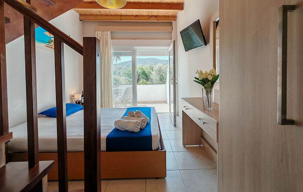 Kuća Mare Monti se nalazi na 190m od najlepšeg dela plaže u Sarti beach-u. U ponudi su studiji za 2 do 4 osobe, koji se nalaze u niskom prizemlju, prvom i drugom spratu, kao i studiji sa galerijom za do 5 osoba koji se nalaze u prizemlju. Kuća ima SAT TV, WIFI i klima uređaj čije se korišćenje posebno doplaćuje. Gostima je na raspolaganju korišćenje bazena koji je u dvorištu kuće.