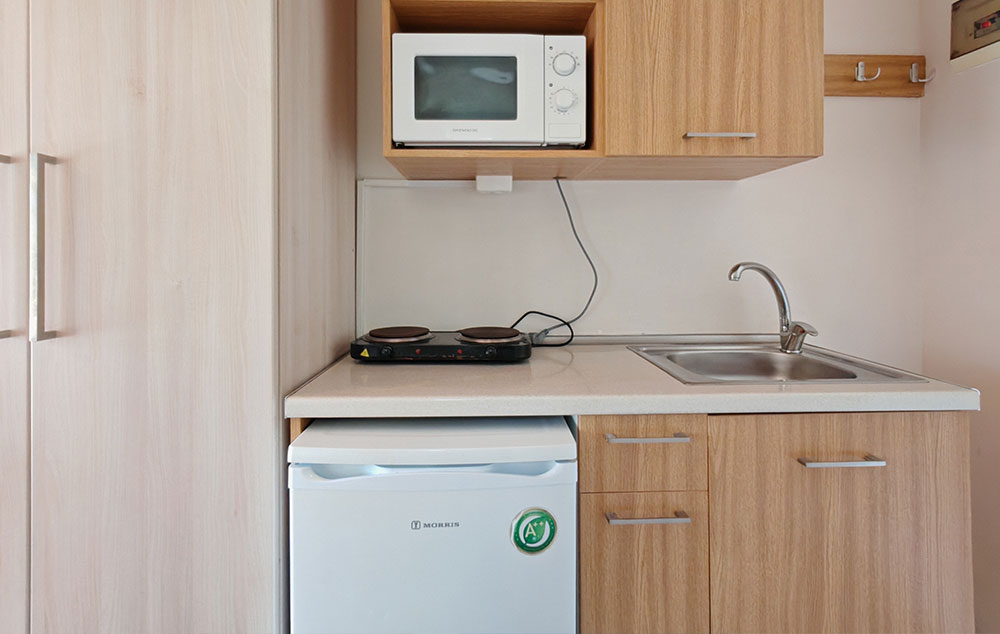 Svi studiji i apartmani imaju terasu, wc i tuš sa toplom i hladnom vodom, sto i stolice, orman, čajnu kuhinju sa frižiderom koja je opremljena prema broju osoba (tanjiri, čaše, šolje, escajg, šerpa, tiganj, džezva za kafu ). Promena posteljine je na pola smene, za smene duže od 8 noći. U većini objekata domaćini kuća na dan zamene posteljine dostavljaju čistu posteljinu koju gosti sami menjaju kao što i sami održavaju higijenu smeštajne jedinice tokom svog boravka. U pojedinim objektima, osoblje kuće ulazi u smeštajne jedinice i samostalno vrši zamenu posteljine. Pored standardne opreme, smeštajne jedinice mogu imati i određenu opremu koja ih izdvaja u odnosu na ostale smeštajne jedinice iz ponude. U cenovnicima se pored naziva određenih kuća nalaze brojevi.