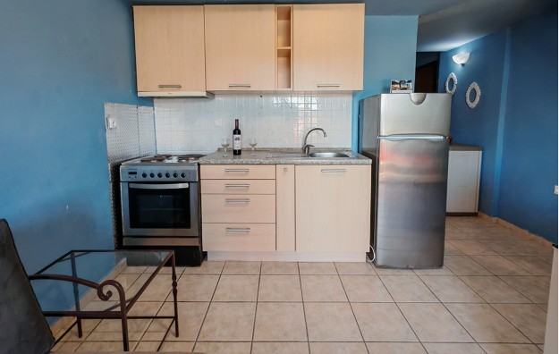 Nalazi se odmah preko puta kuće Magda na samo 80m od plaže u najlepšem delu Kalamicija. U ponudi je prostran apartman sa galerijom na prvom spratu koji može da ugosti do 6 osoba. Na donjem nivou ima dnevni boravak sa većom kuhinjom i spavaću sobu. Na galeriji se nalazi francuski ležaj. Apartman ima TV, dva klima uređaja čije je korišćenje uključeno u cenu.