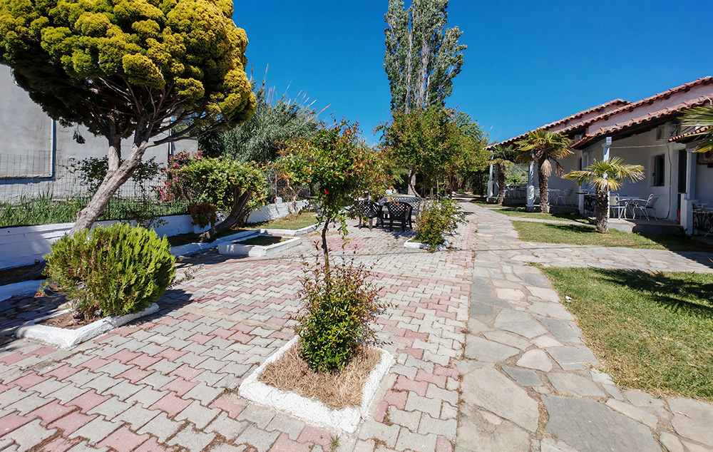 Bungalovi se nalaze na oko 20m od glavne zgrade i smešteni su u prelepom dvorištu punom cveća i zelenila gde je gostima na raspolaganju i roštilj. Kuća ima SAT TV, signal za bežični internet i klima uređaje čije je korišćenje uključeno u cenu. Gostima je na raspolaganju i korišćenje ograničenog broja parking mesta. Prilikom zamene posteljine je organizovano i čišćenje smeštaja. Zbog lokacije kao i zbog strukture bungalova ovo je jedan od ubedljivo najtraženijih smeštaja u Toroniju.