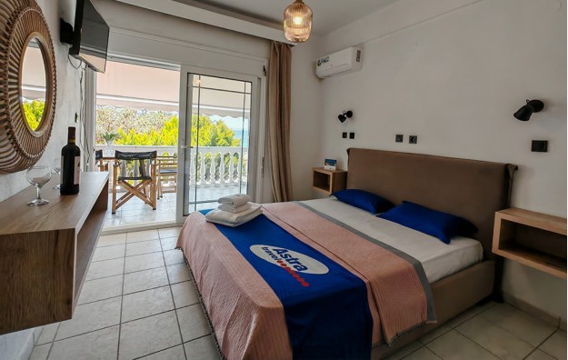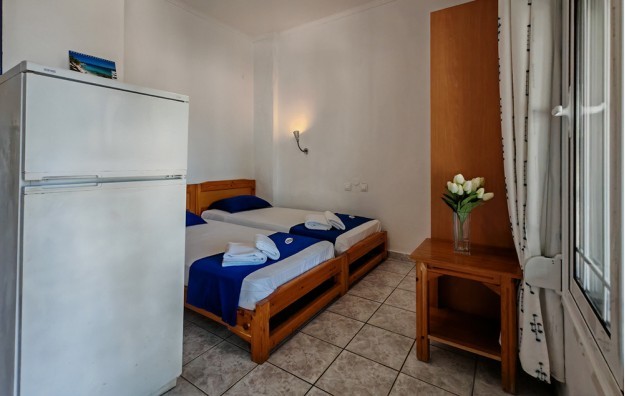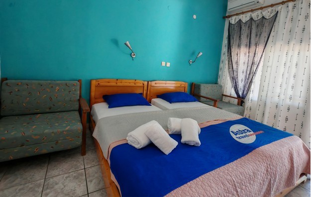Nalazi se na najlepšem delu plaže. Studiji, apartmani i duplexi su u glavnoj zgradi, smešteni u prizemlju i na prvom spratu. Studiji imaju blago izdvojenu kuhinju, a u spavaćem delu dva klasična kreveta i jednu ili dve fotelje na razvlačenje. Apartmani i duplexi imaju terase sa pogledom na more. Kuća ima SAT TV, signal za bežični internet kao i klima uređaje čije je korišćenje uključeno u cenu. Prilikom zamene posteljine je organizovano i čišćenje smeštaja. Zbog lokacije ovo je jedan od ubedljivo najtraženijih smeštaja u Toroniju.