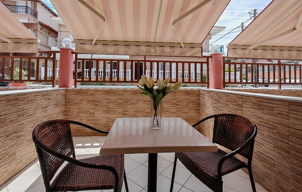 Kuća Ostraco nalazi se u novom delu Sartija na oko 20m od najlepšeg dela peščane plaže. Studiji i apartmani se nalaze u niskom prizemlju, na prvom i drugom spratu. Kuća ima prostrane terase, od kojih većina gleda bočno ka moru. Kuća ima SAT TV, signal za besplatan WIFI i klima uređaje čije se korišćenje posebno doplaćuje.