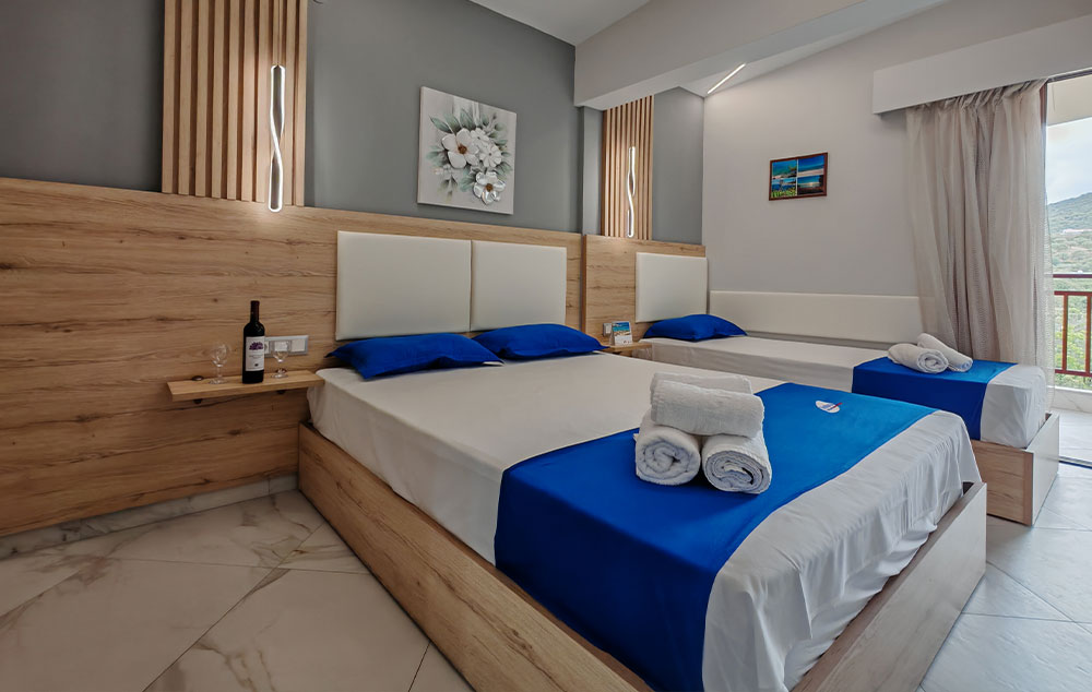 Nalazi se na oko 180m od najlepše uređenog dela plaže u Sartiju i na 70m od trga. U ponudi su studiji za 2-4 osobe koji se nalaze na trećem spratu. Kuća ima SAT TV, klima uređaje čije je korišćenje uključeno u cenu u julu i avgustu i signal za besplatno korišćenje bežičnog interneta. Novi studiji su primili prve goste u maju 2024. godine.