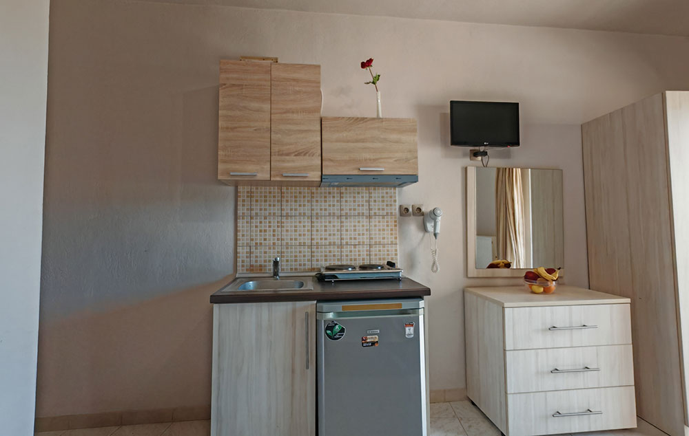 Svi studiji i apartmani imaju terasu, wc i tuš sa toplom i hladnom vodom, sto i stolice, orman, čajnu kuhinju sa frižiderom koja je opremljena prema broju osoba (tanjiri, čaše, šolje, escajg, šerpa, tiganj, džezva za kafu ). Promena posteljine je na pola smene, za smene duže od 8 noći. U većini objekata domaćini kuća na dan zamene posteljine dostavljaju čistu posteljinu koju gosti sami menjaju kao što i sami održavaju higijenu smeštajne jedinice tokom svog boravka. U pojedinim objektima, osoblje kuće ulazi u smeštajne jedinice i samostalno vrši zamenu posteljine. Pored standardne opreme, smeštajne jedinice mogu imati i određenu opremu koja ih izdvaja u odnosu na ostale smeštajne jedinice iz ponude. U cenovnicima se pored naziva određenih kuća nalaze brojevi.