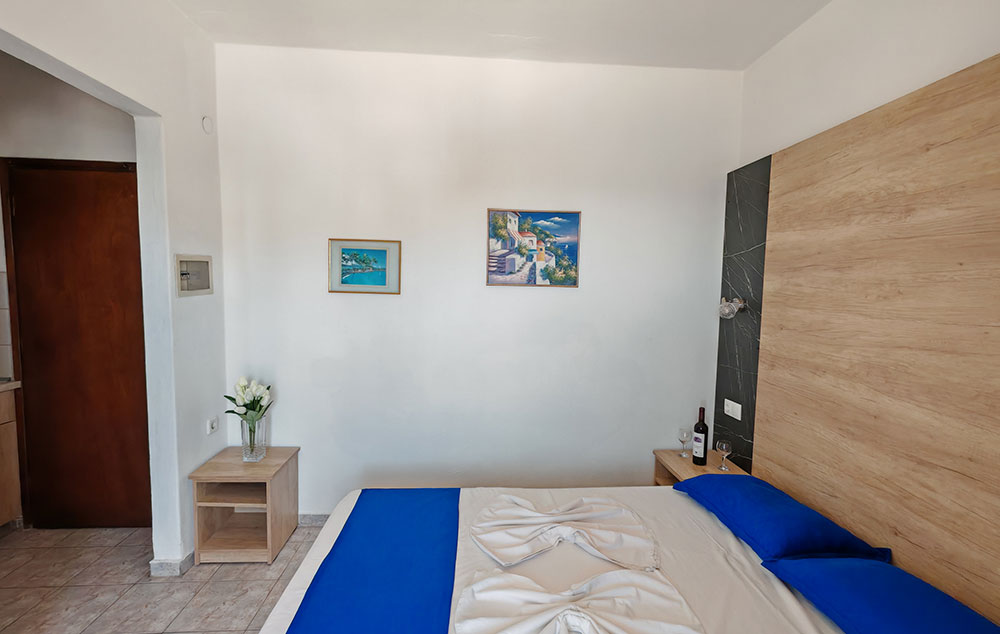 Svi studiji i apartmani imaju terasu, wc i tuš sa toplom i hladnom vodom, sto i stolice, orman, čajnu kuhinju sa frižiderom koja je opremljena prema broju osoba (tanjiri, čaše, šolje, escajg, šerpa, tiganj, džezva za kafu ). Promena posteljine je na pola smene, za smene duže od 8 noći. U većini objekata domaćini kuća na dan zamene posteljine dostavljaju čistu posteljinu koju gosti sami menjaju kao što i sami održavaju higijenu smeštajne jedinice tokom svog boravka. U pojedinim objektima, osoblje kuće ulazi u smeštajne jedinice i samostalno vrši zamenu posteljine. Pored standardne opreme, smeštajne jedinice mogu imati i određenu opremu koja ih izdvaja u odnosu na ostale smeštajne jedinice iz ponude. U cenovnicima se pored naziva određenih kuća nalaze brojevi.