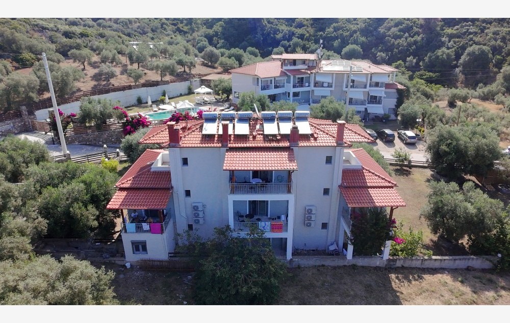 Nalazi se u blizini Neos Marmarasa, u zalivu Simonitiko, na oko 320m od prelepe plaže. U ponudi su studiji i duplexi smešteni u prizemlju, na prvom i drugom spratu. U svojoj ponudi ima dečiju zonu, roštilj i parking. Bazen u okviru kuće Zeppos je na raspolaganju i gostima kuće Zeppos Garden, dok je dečija zona smeštena pod maslinjakom u izuzetno prostranom travnatom dvorištu. Kuća ima SAT TV, klima uređaje uz doplatu, WIFI i parking, kao i čišćenje na pola smene prilikom zamene posteljine.