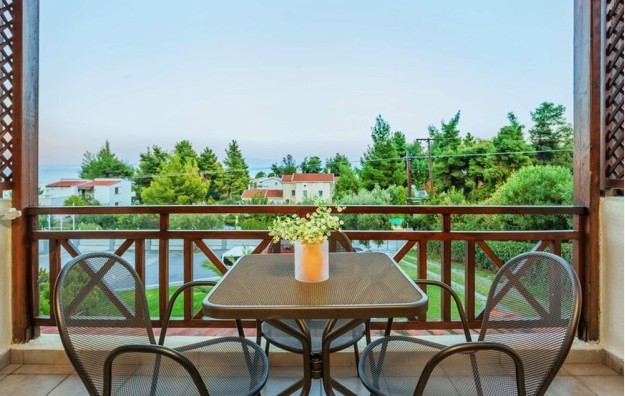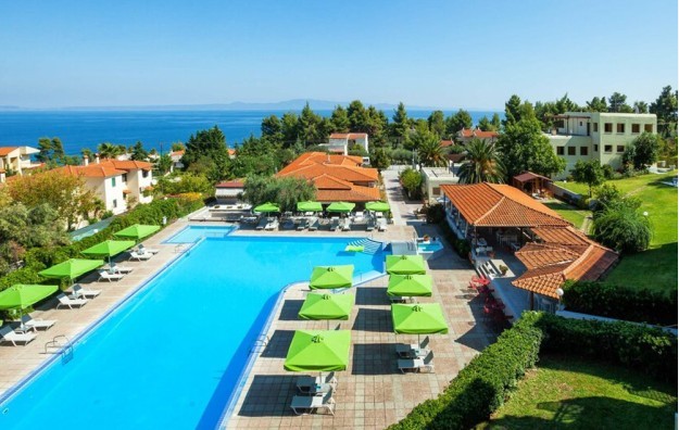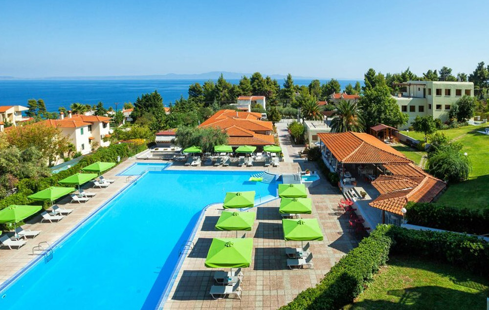 LOKACIJA: Na poluostrvu Halkidiki, Kasandra, između zelene, borovinom pokrivene planine i idiličnih plaža, u mirnom okruženju, 90 km od solunskog aerodroma, 600 m od plaže, 1.5 km od mesta Kriopigi i 2.5 km od mesta Kalitea.