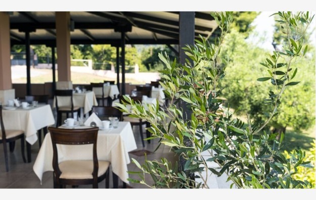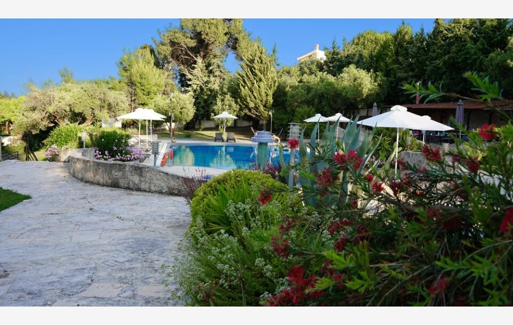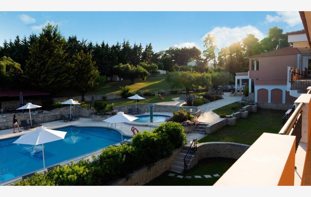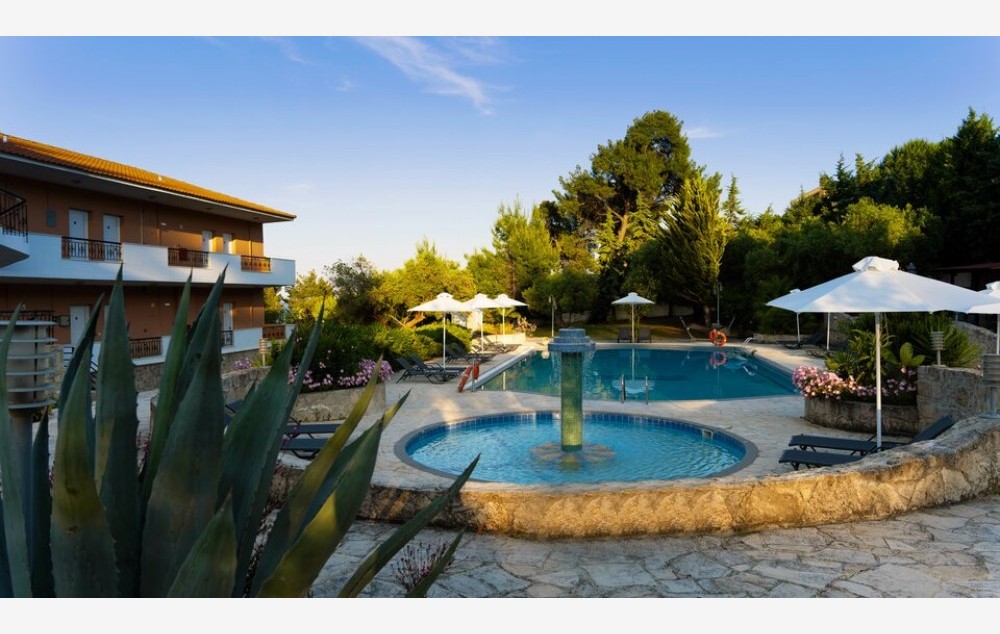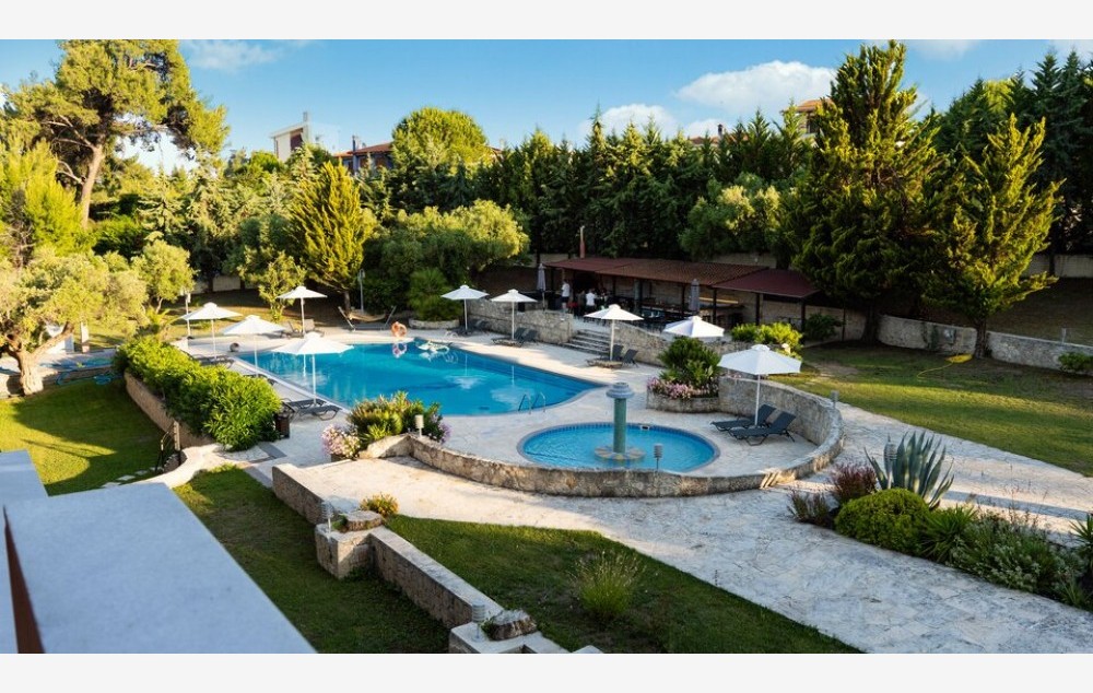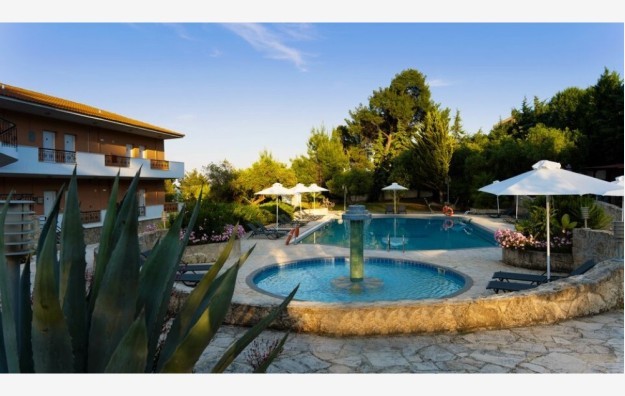 SADRŽAJ:mali porodični hotel smešten u lepo uređenom parku. Hotel poseduje bazen, ležaljke i suncobrane na bazenu, bazen za decu, dečije igralište, recepciju, besplatan Wi-Fi na recepciji, restoran, bar kraj bazena gde se organizuju grčke večeri, parking.
