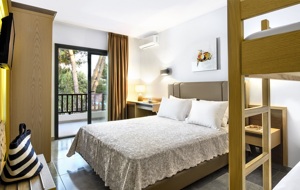 Double Room Pool View Bunk Bed - 20 m², služi kao udobna porodična soba, ima bračni krevet i stabilan krevet na sprat za decu.