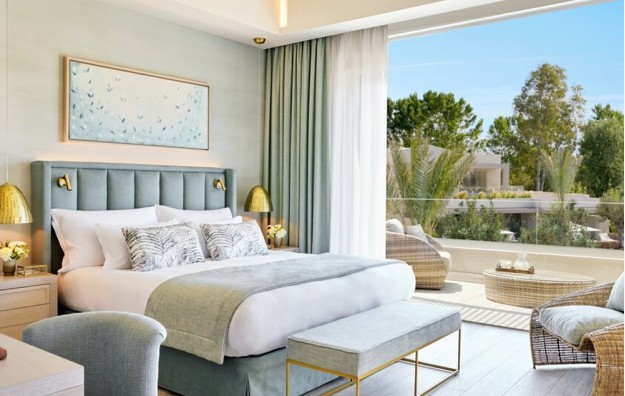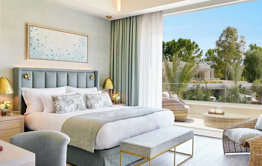 One Bedroom Suite Grand Balcony Garden view-Potpuno renovirani, luksuzni apartmani, svaki u potpunosti prilagođen bebama, deci i njihovim roditeljima. Prostranog, savremenog dizajna sa odvojenim dnevnim i spavaćim sobama za najudobniji boravak. Svaki apartman nudi sopstveni prostrani balkon sa nameštajem i svime što Vaš boravak čini posebnim, uključujući luksuzne krevete, izbor jastuka i izbor kompletnog asortimana vrhunske opreme i osnovnih potrepština za naše male goste. Prozori od poda do plafona preplavljuju prostrane sobe svetlom i spektakularnim pogledom. Pored toga, kupatilo je opremljeno kišnim tušem i kadom sa luksuznim toaletnim priborom Anne Semonin. Cca 55 m2. Dodatne pogodnosti: drveni krevetić, bade mantili i papuče, posteljina i vešalice, BabiBjorn Relak, grejač za flaše i sterilizator, prostirka za previjanje, sedište za kupatilo, mašina za belu buku, noćno svetlo, mreža protiv komaraca, noša i VC daska, dostupni u sobi, na zahtev ili na licu mesta, zavisno od raspoloživosti.