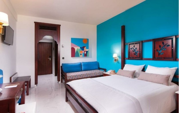 One Bedroom Suite-47 m2, sa glavnom spavaćom sobom sa bračnim ili dva odvojena kreveta i dnevnim boravkom sa 3 kreveta na razvlačenje za decu, sopstvenim kupatilom sa tušem i nameštenim balkonom sa pogledom na baštu ili more.