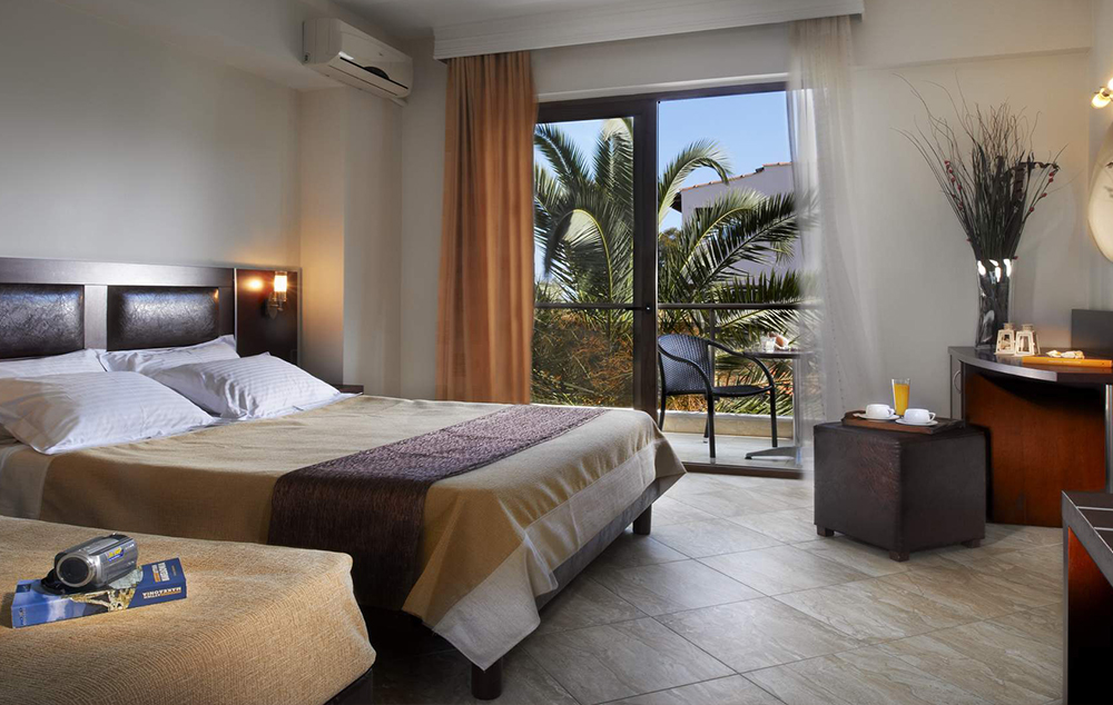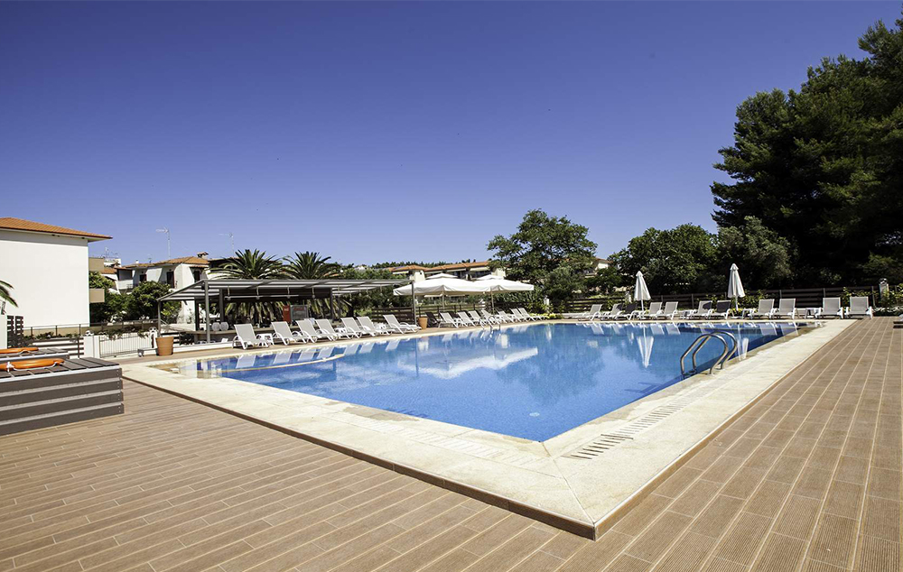 LOKACIJA: Mali porodični hotel, nalazi se u srcu Sitonije, u prelepom okruženju malog mesta Metamorfosi. Svojim gostima nudi apsolutni mir i opuštanje na 70-ak metara od mora. Hotel ima ukupno 90 soba raspoređenih u 6 zgrada.