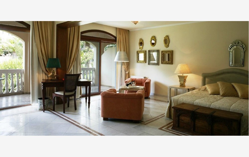 Mediterranean Suite Sea View-90 m2, Mediteran Suite, gracioznost, raskošnost i visina mediteranskog kraljevskog štih. Mediterranean Suite ima veličanstvene prozore od poda do plafona i klizna vrata iz elegantne i odvojene spavaće sobe i dnevne sobe, nudeći izvanredan panoramski pogled na vrtove i Sredozemno more. Sa aktivnim mermernim kaminom, lepo dizajniranim po meri i antiknim nameštajem, ovaj dom izazvan suncem nudi obilje stilskog prostora uparen sa božanskim pogledom da biste se izgubili sa lokacije na gornjem spratu.