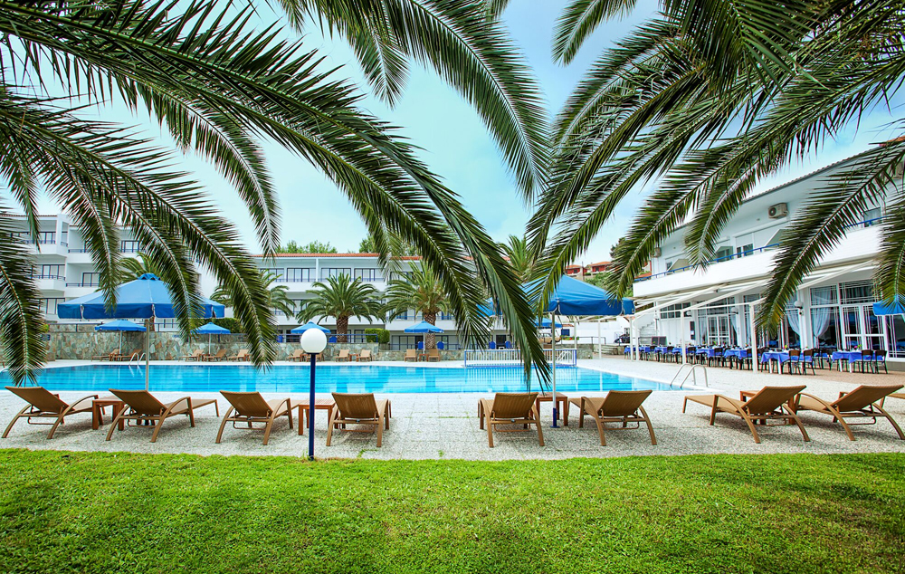 LOKACIJA: Hotel Port Marina udaljen je 700 metara od plaže, u mirnom delu između Pefkohorija i tradicionalnog sela Paliouri, na južnom kraju poluostrva Kasandra. Hotel se prostire na 1200 m2 i ima 6 zgrada s 90 udobnih soba s pogledom na more i vrt, veliki bazen, barove, restorane i sadržaje za decu. Prekrasnu peščanu plažu Glarokavos s ležaljkama i suncobranima na samo 600 metara od hotela.